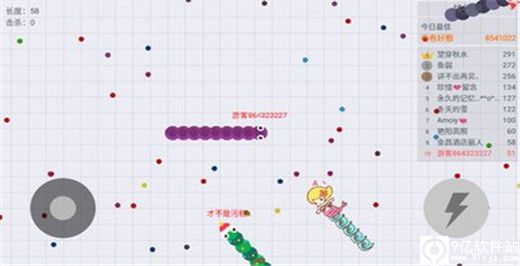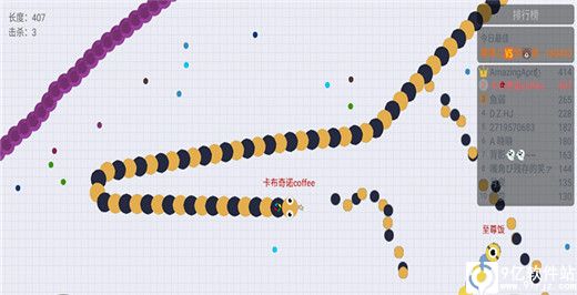 如果你已经成长到一定的程度,就可以以围绕的方式将小蛇圈到自己的可移动的范围,然后慢慢缩小包围圈,等待敌人失误被杀,最后将其吞噬。