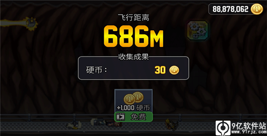 4、结束游戏可以查看飞行距离和获得的金币数量