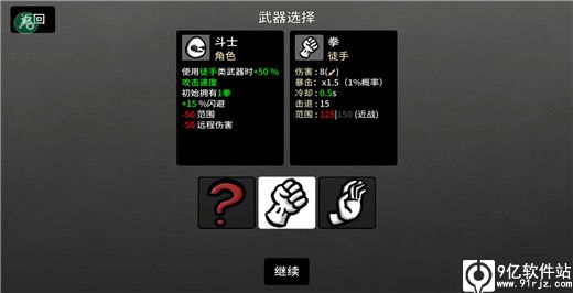 2、角色特点:使用徒手类型道具时,增加50%攻击速度;初始拥有1个拳头;增加15%闪避;减少50攻击范围;减少50远程伤害。