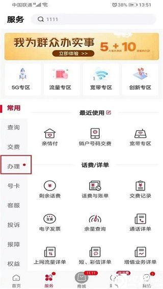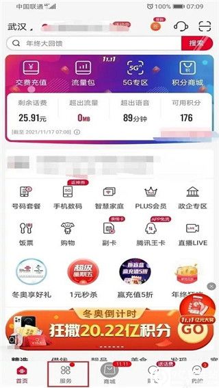 在本站中下载打开中国联通app,进去首页之后,大家可以看到底部导航栏有一个服务,点进去