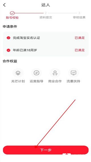 4、进入页面进行账号校验,然后点击下一步。