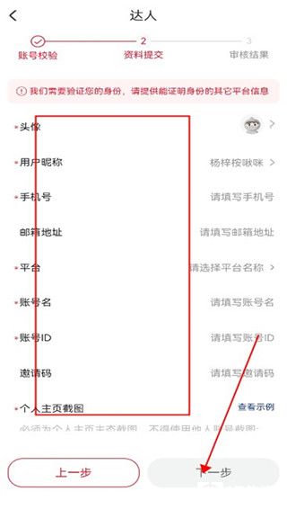 5、接下来填写各种基本信息,然后点击下一步查看审核结果即可。