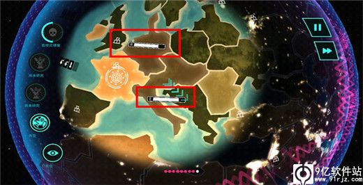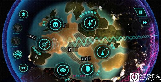 4、放大视图,点击地球上的其余势力,玩家可以选择直接攻击、研究、扩张拆除以及建造导弹等操作;