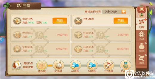 3、每天任务挑简单的做,活跃度凑足150点,有100个御神币,这个东西可以解锁GM商店,存起来