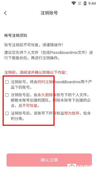 2、 注销之前建议观看一下注销须知,勾选下面内容;