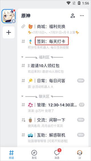 1、进入软件,选择关注的频道进行签到打卡可获得积分