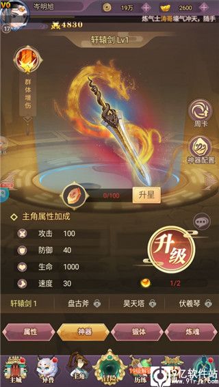 器灵效果:神器获得器灵加成;属性大幅度提升;同时还拥有全新的战斗技能
