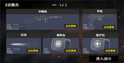 2、选择完兵种后再 选择武器装备,玩家点击更换可以切换武器