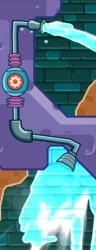 当水,毒水,泥浆或水蒸气碰到开关时同色的挡板(或风扇、吸水器)会触发某些事件。有2种开关:第1种是筒状的,不可关闭,触发会消耗1滴物质;第2种四周有按钮,有物质接触打开,物质移开则关闭。第2种开关也可以用气球打开。