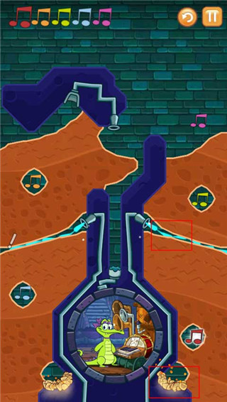 2、第一关就是按照正确的顺序将水导入所有的音符,并且还要保证小鳄鱼有水洗澡。