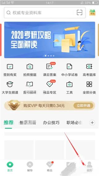 在打开百度文库最新版后,可以通过点击底部菜单栏的“我的”选项进入个人中心界面