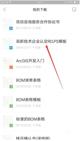 进入“我的下载”界面后,可以长按需要删除的文档,然后在弹出的选项中选择“删除”