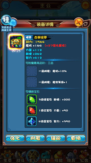 另外,我需要提醒玩家,挂机吧兄弟九游版引入了“全身强化”的概念。当玩家全身装备齐全且全部进行了强化后,装备属性将得到提升。属性加成程度与强化的等级相关。因此建议所有玩家,要记得强化所有装备。