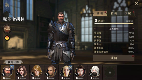 3、猎魂:通过提升猎魂星级和效果能提升战斗的生存和输出能力,魂戒满时发出的锁链可牵制巨兽部位。