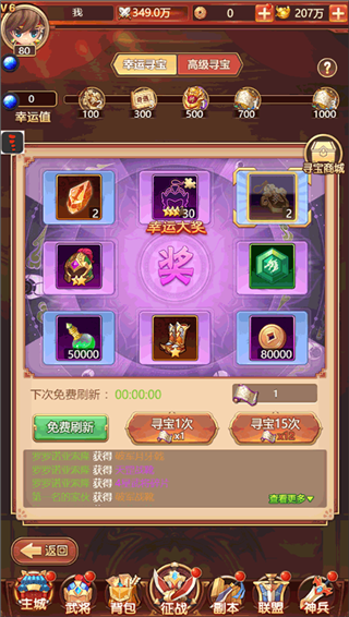 5、每次寻宝都会获得10点幸运值,幸运值达到一定数量后可以领取相应的奖励。