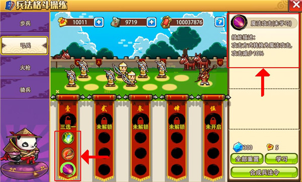 2、学习兵法:消耗兵法令(消耗随学习兵法的数量增加)