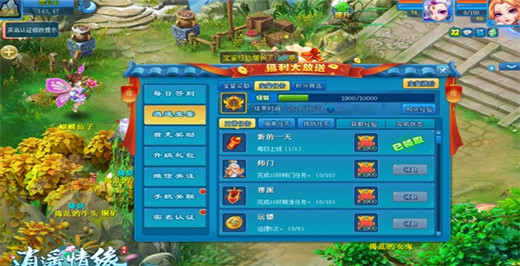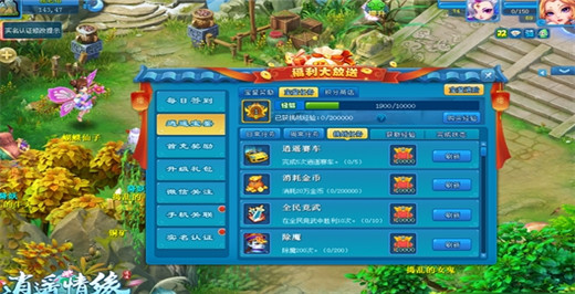 逍遥宝鉴福利系统,也是自带多种任务的玩法系统,玩法包括每天都可以做一次,获得少量经验,每晚0点刷新的日常任务;每周都可做一次,获得中量经验,周日晚0点刷新的周常任务;可以无限次完成,获得大量经验,完成之后自动刷新出新任务的挑战任务。