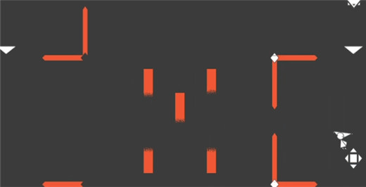 这一设计的很有意思,将整个屏幕分为两个界域,玩家们通过第一层之后。可以直接从中间那条分隔颜色界面走到第二层,再重复一遍就行,这样的话就通关。
