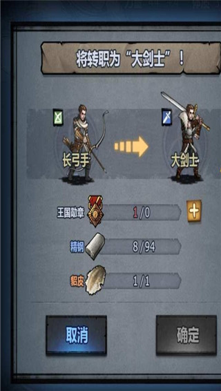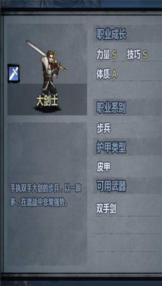 转职为弓箭手升到15级,学习狩猎欲望技能,之后转职轻骑兵,补力量及技巧成长,再到20级转职为勇士,补力量成长,等到29级的时候就可以转职成为大剑士了。