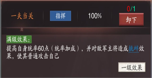 程普携带【息军养士】【一夫当关】。带程普的原因是因为这个武将本身主技能能够提供搅乱,既可以做到控制,又可以提供状态为马超主技能提供伤害,携带【一夫当关】使程普来当作肉盾抗下主将伤害,本身提供的60统率能够让程普更弱一些,【息军养士】是为保障程普安全,不至于承受对方两个武将的伤害而暴毙。