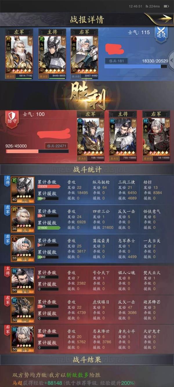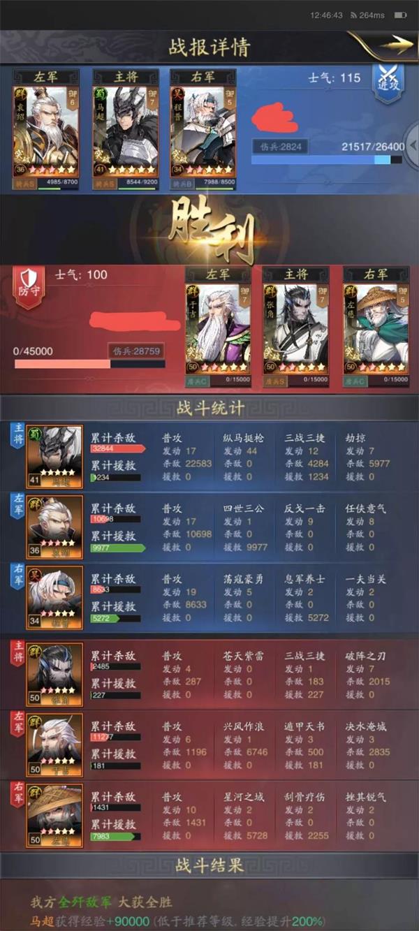 从第一份战报来看马超自身所提供的伤害达到了惊人的3万以上,大奶袁绍提供的奶量也及其丰厚,其中程普提供的三次【荡寇英勇】对于敌方输出许褚和典韦控制效果明显,包括马超自身技能所能提供的控制,所以敌方输出几乎全无,没有全歼对方,可以说是生磨掉的魏盾。