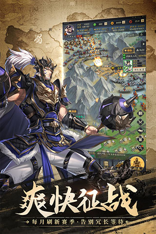 三国全武将悉数登场,独创酒肆系统,能够在酒肆以结交好感方式轻松获取名将,所有武将均可回收成信物,换取你心仪的高资质橙将。