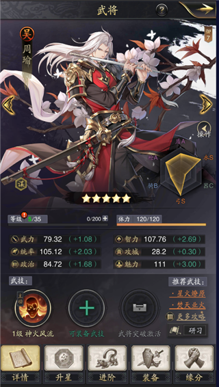 周瑜可以带刮骨疗伤和羽翼丰满,刮骨疗伤可以回血保证生存能力,羽翼丰满可以说是个不错的辅助技,为左右军增加武统智60点;