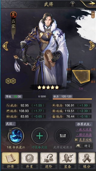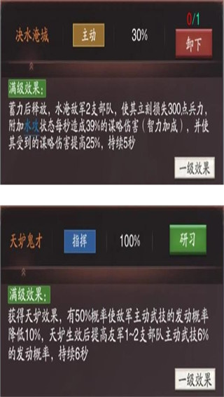 吕蒙可以带决水淹城和天妒鬼才,决水淹城有着高额的伤害之外还拥有增加24%谋伤,天妒鬼才有50%降低敌方10%发动率同时还帮助队友增加6%发动率