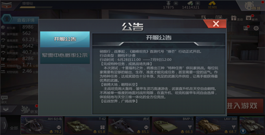 点开游戏,最先映入眼帘的是游戏的公告,基本上每次游戏更新之后都会在公告上公布出来,请大家密切关注。