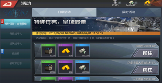 进入日常活动,在这里只要完成对应的活动将会获得大量的进阶材料和黄金,想变的更强,别忘记按时完成每天的任务