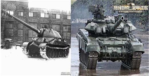 IS-7是冷战初期苏联坦克技术的集大成者,应用了海军舰艇发动机、自动装弹、红外夜视仪等大量全新技术,远远领先于同时代的坦克。而上世纪七十年代研发的T-72是全球首款第三代主战坦克,但由于研发较早实际上T-72很多技术相对于标准的三代坦克不够成熟。两者时间跨度不长,代差却很悬殊。我们从火力、防护力、机动性深入比较:火力上当年崇尚口径的战斗民族直接为IS-7安上了130mm舰炮,在弹药类型相同的情况下,与T-72的125mm滑膛炮差距不大;防护上IS-7独特的箭簇型装甲让其拥有强悍防护力,而T-72虽然使用新复合材料、反应装甲等现代技术材料但只是标准配置使得其防护性略逊一筹;机动方面由于T-72重量、发动机方面的优势因此强于IS-7,除此之外技术落差使二者在视距侦察、火控系统、操控等综合性能的差距进一步拉大。