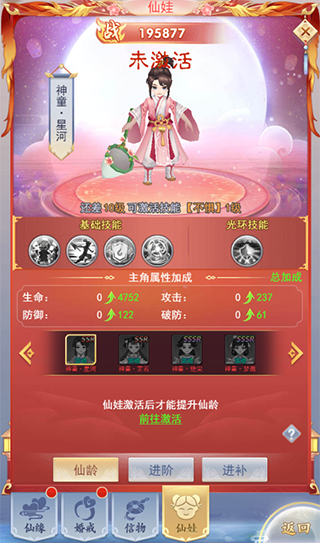 无法以提升仙龄的方式直接进到下一阶,只有通过碎片合成和参与精彩活动的方式来获得更高阶的仙娃。