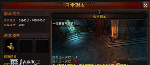 在金币副本中,你不仅可以获得大量金币,也可提升手速和熟悉职业技能。