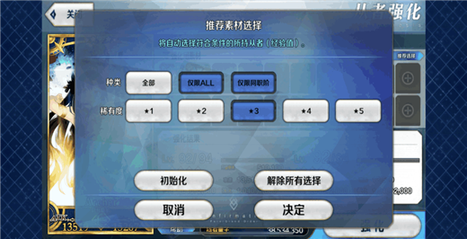 这里提一嘴一个功能,就是素材推荐,你可以筛选素材星数,就可以一键填充素材强化了。