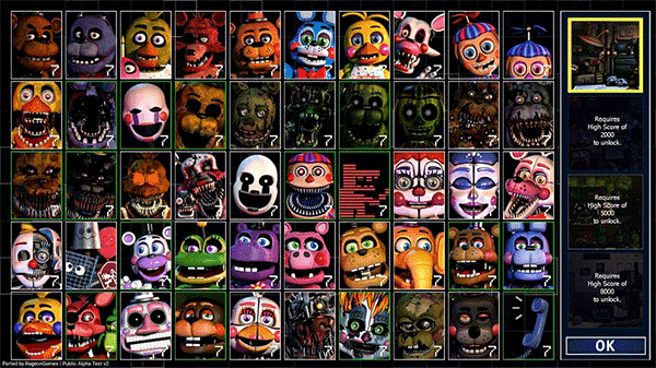 1、自定义挑战:在UCN终极自定义夜手机版中,玩家可以选择接近50种个性鲜明的玩具熊角色,进行为期七天五夜的生存挑战。所有角色可自由搭配,玩家甚至可以将喜爱的角色形象融入游戏。