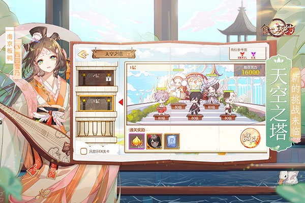 4、飨灵探索可获得鄉零碎片,调料和餐厅升级材料。每探索一层要扣10新鲜度(食物体力),在探索过程中可能会遇到敌人(可以选择打或不打),所以建议探索部队也要搭配和升级。