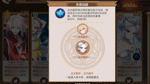 比方说,小龙虾使用连携技会看到提示需要与辣条共同上阵才能激活。