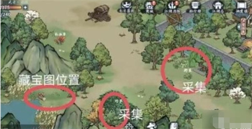 1、首先我们可以看到画面上标记的位置,在这些位置上寻找到宝箱和藏宝图的位置。