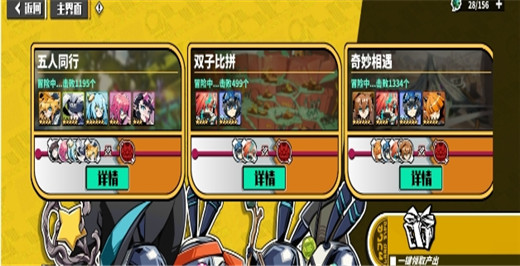 首先来到主界面然后点击试炼,在这里看到资源的选项,里面的小队集结一定是很多玩家都容易错过的界面,在这里就能看到各种羁绊了。五人同行就是主角团队的几个角色在里面相同羁绊的角色可以组队自动刷怪,看到战斗冒险可以到小队累计击败的怪物的数量,随着时间不断的累加,不用玩家操作,只要按时去领取收益就可以了。