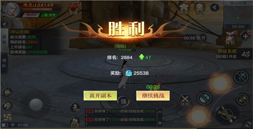 还有在“华山论剑”这个副本中不同于其他副本可以挂机操作,在这里是全靠自己来进行操作的,所以“华山论剑”这个副本可以使玩家进一步体验这款游戏精彩的打斗场面,秀出自己华丽的操作。在“华山论剑”这个副本中除了玩家自己的操作之外,决定对战最终结果的还是要看双方的总战力,如果你的总战力比对方高不管对方的排名比你高多少那么你也一定会赢的这场对战。所以要想打赢“华山论剑”来获得经验,那么最主要的就是要提升自己的总战力。