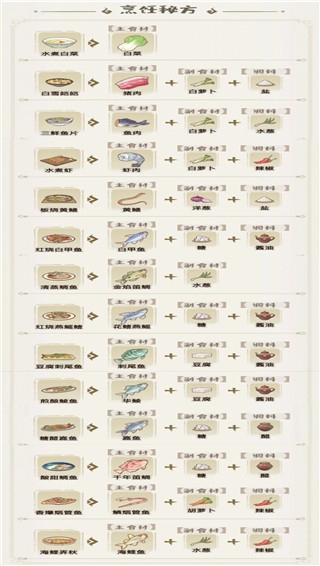 注:(老虎鱼,武昌鱼,蝴蝶鱼,皱唇鲨,狮子鱼)这五条鱼没有菜谱不能做菜用,“马肉”也一样不能做菜。做菜非百分百成功,做不出来的多试几次