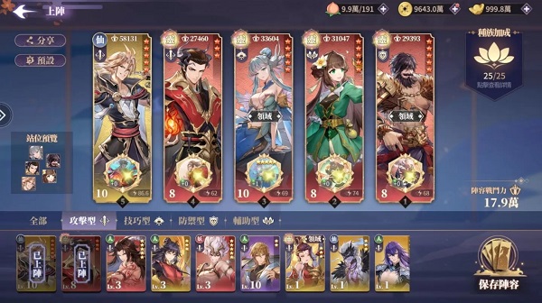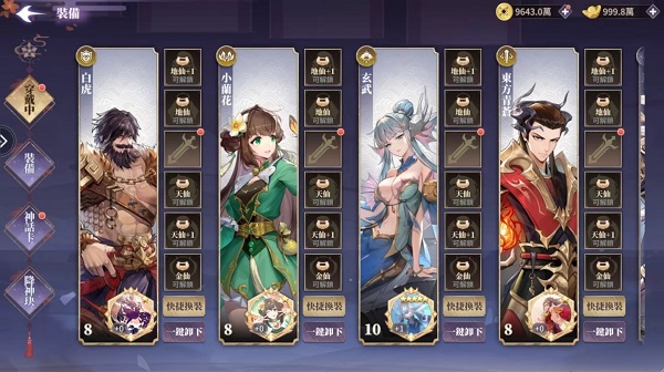 玩家一共可以配戴“头盔”、“衣服”、“玉珮”、“戒指”、“项鍊”、“武器”等六件装备,在前期只要考量装备属性,只要有提升就可以使用,到了中后期就需要针对武将的属性去做配置,最基本的概念可以从角色的定位中选择装备属性。输出型选择“攻击”、“暴击机率”为主,到后期暴击机率提升后,可以视情况补充“暴击伤害”;控制型角色则以“速度”为主,其馀可选择“命中”、“抵抗”等,以能够最快速度放出控场技能为主;至于肉盾型角色当然最主要就是选择“防御”属性。