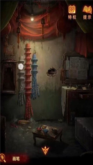 拿到风车的各位就可以前往下一个地方,大家只要用木板伸进洞,再拿小石块把雕像给砸碎,即可得到钥匙打开大门进入新房间,这个房间就是大家需要探索的新区域,里面的场景会更诡异,小伙伴们倒也不用害怕,反正只要知道把木偶头放置在神龛后,拿到画笔,用画笔给木偶头画个眼睛就行,一点点小恐怖之后,就能拿到房顶饰品。