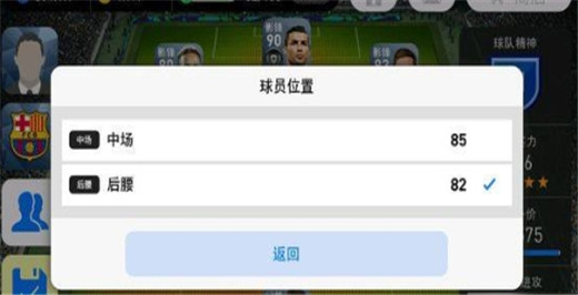球员位置一栏,如图,可选择中场和后腰