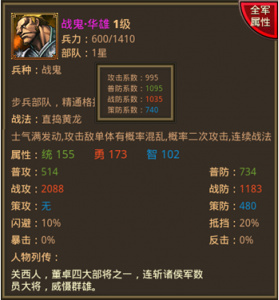 兵种:战鬼。步兵部队,精通格挡,闪避额外加成。