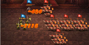 火牛发动攻击,战鬼·华雄减424并,刚·夏侯惇减1115兵。