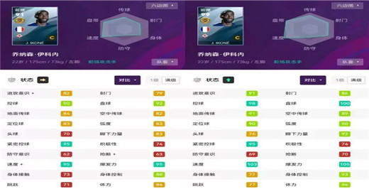 技术:9.0分 他有着超强的控球盘带技术,看上面他的那么技术技能就知道他的花活特别多, 93的身体控制加92的紧密控球,能让他更好的人球结合。