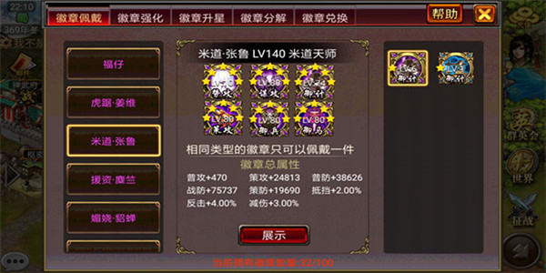 采药中大家反映的问题,每次被坑一千寻宝令,现在已经优化成点选,徽章增加了星级显示,在徽章的上面显示有星级,以及等级显示,如图: