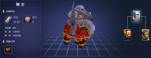 人族三号位,热门兵种之一,小骑士作为散肉性价比很高,肉度也可以,被动的抵伤大大加强了其抗伤能力,散肉首选之一。黑骑士光环兵种,肉度较高,光环群体+3护甲,哪怕前期没出后期也适合补出。嗜血骑士高输出,肉度一般,被动加攻速和吸血是他输出核心,开局裸出单挑能力较强但也好多打不过,适用面较窄,萌新可用兵种较少可出