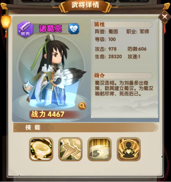 作为兼顾控制、伤害的武将,可谓是游戏前中期必备英雄。诸葛亮普攻带有减速效果,大招效果为:控制、伤害,试问谁会不爱这个能在pvp、pve玩法中逆转乾坤的“在世军师”呢?